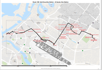 Dubai RTA Bus no: 13B runs between Gold Souq Bus Station and Al Qusais Bus Station.
