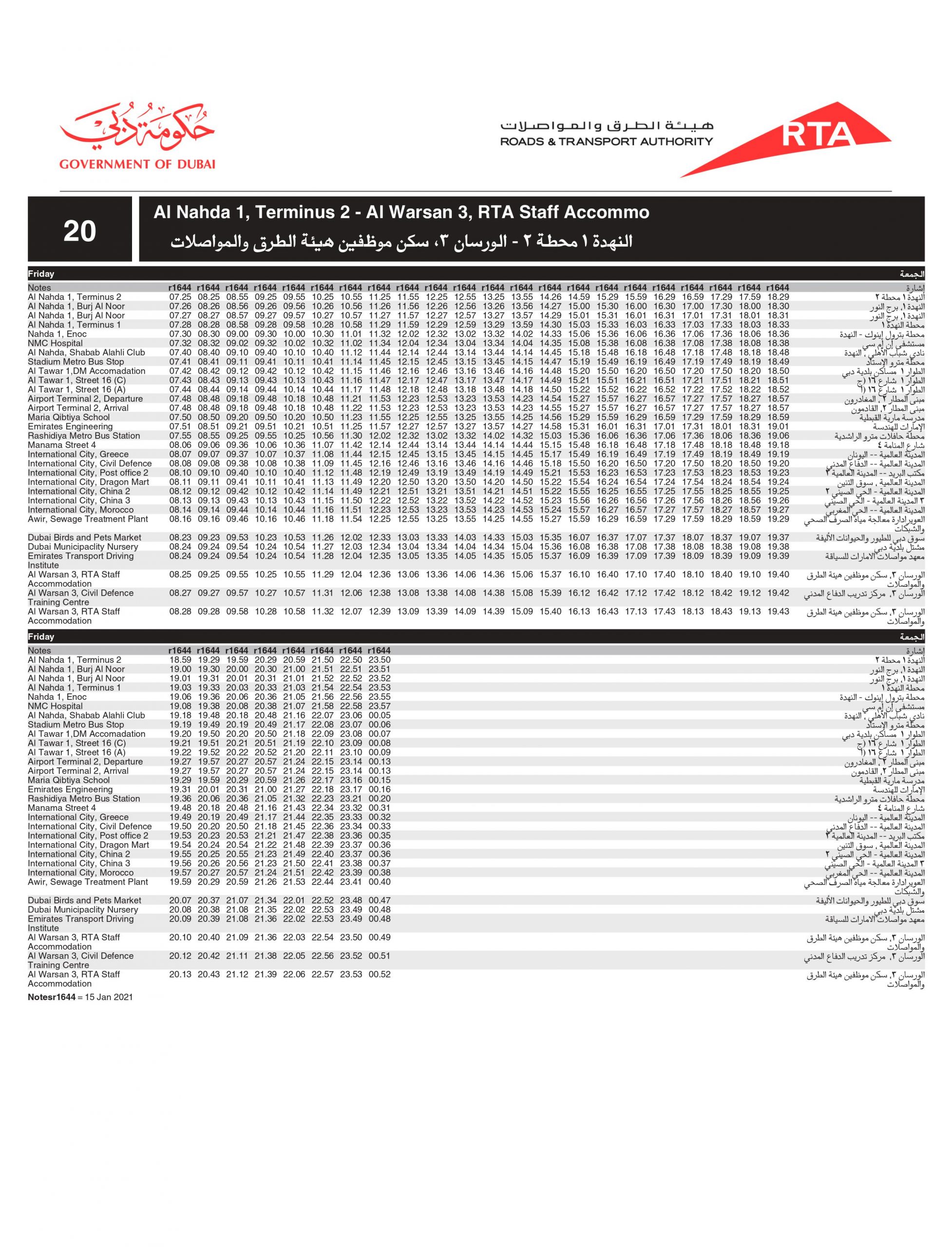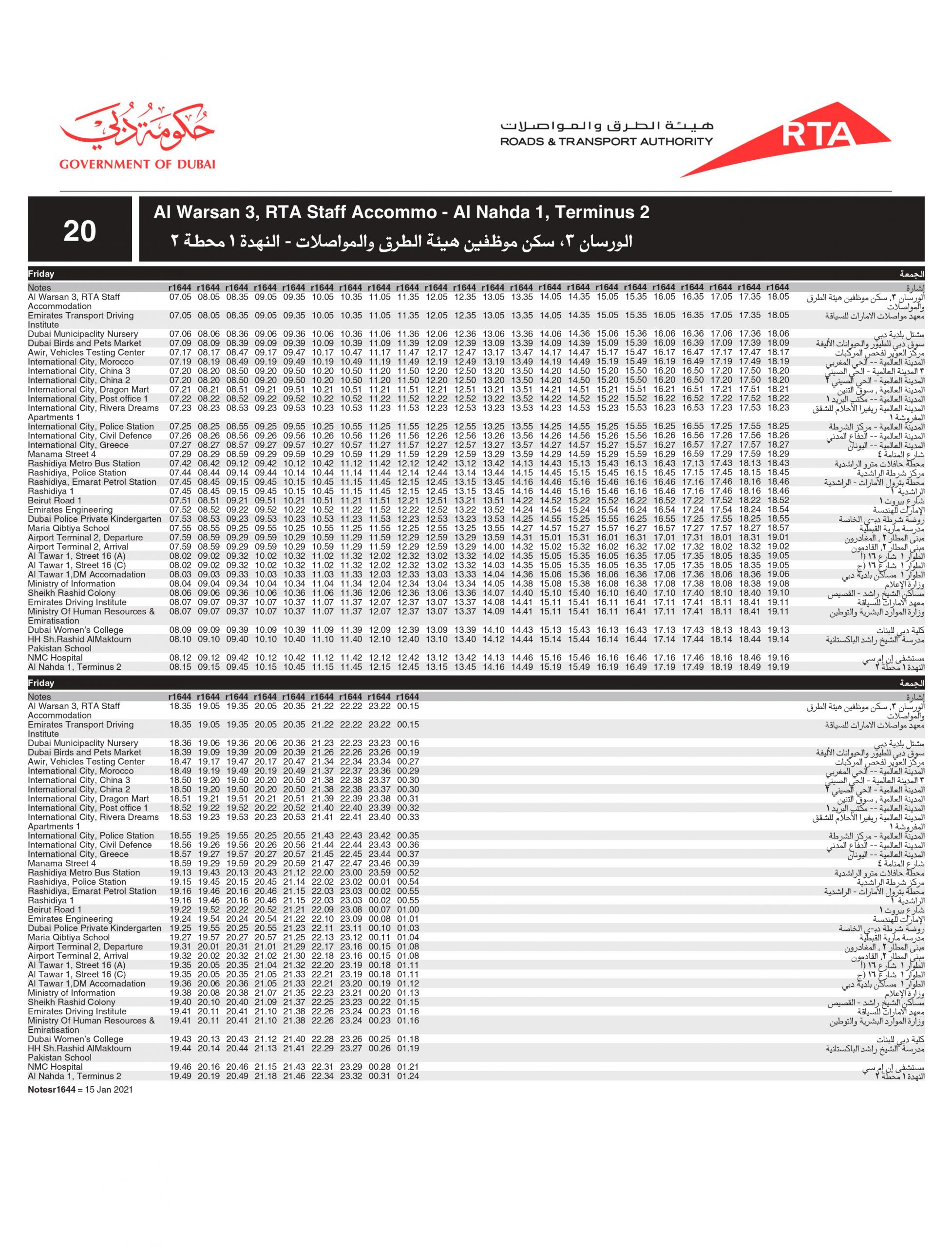 Dubai Bus number 20 A stops at the below bus stops: