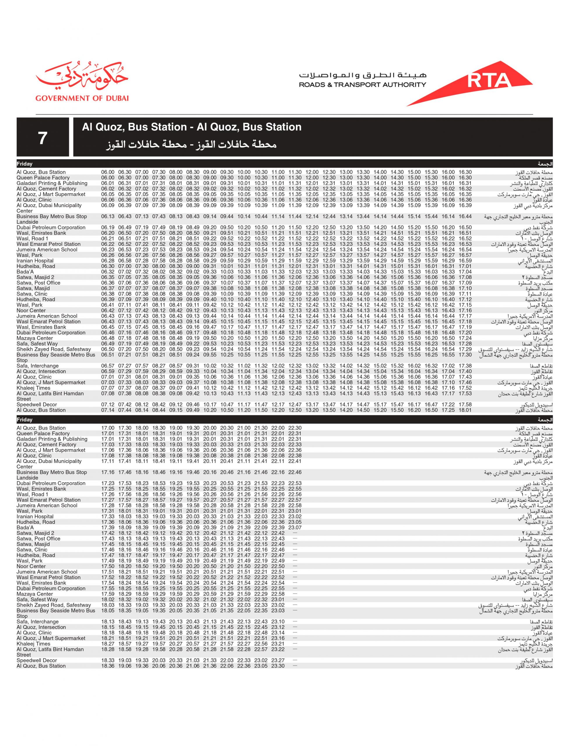 Got any question about Dubai RTA Bus No: 7? Contact Dubai RTA