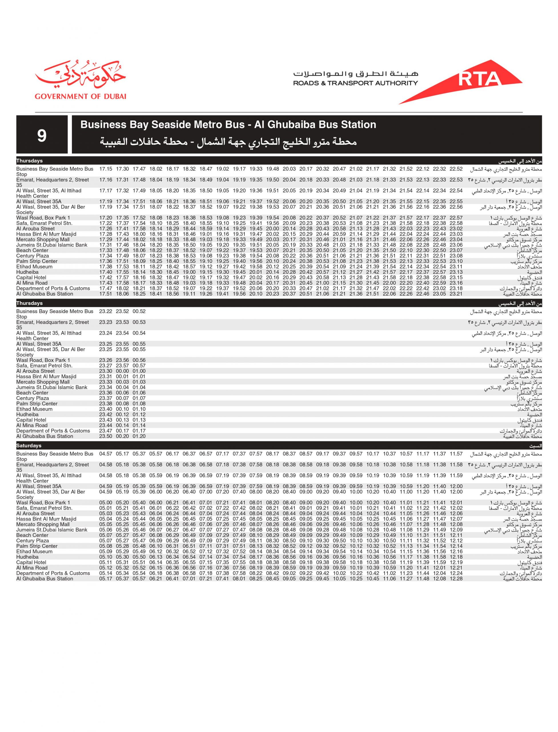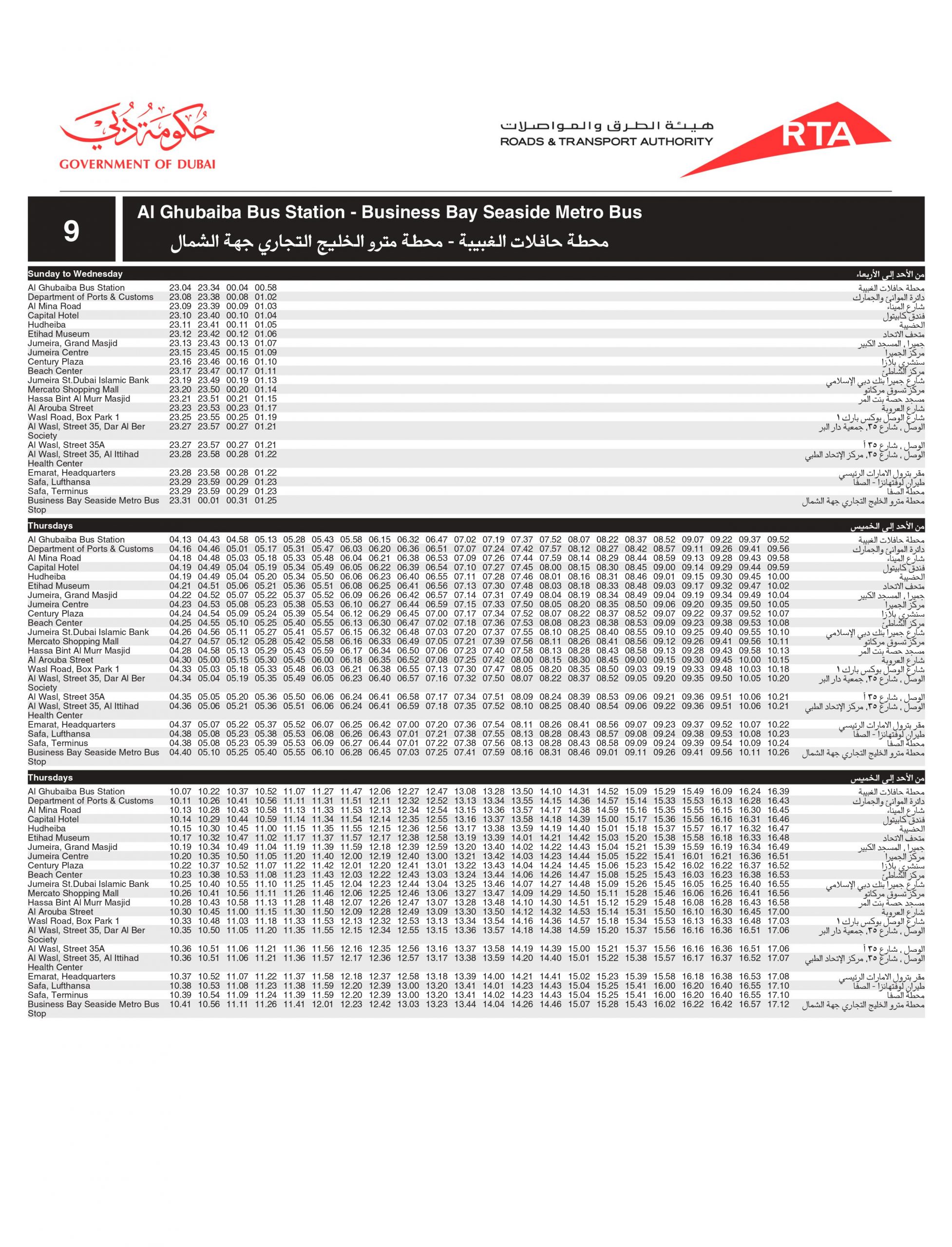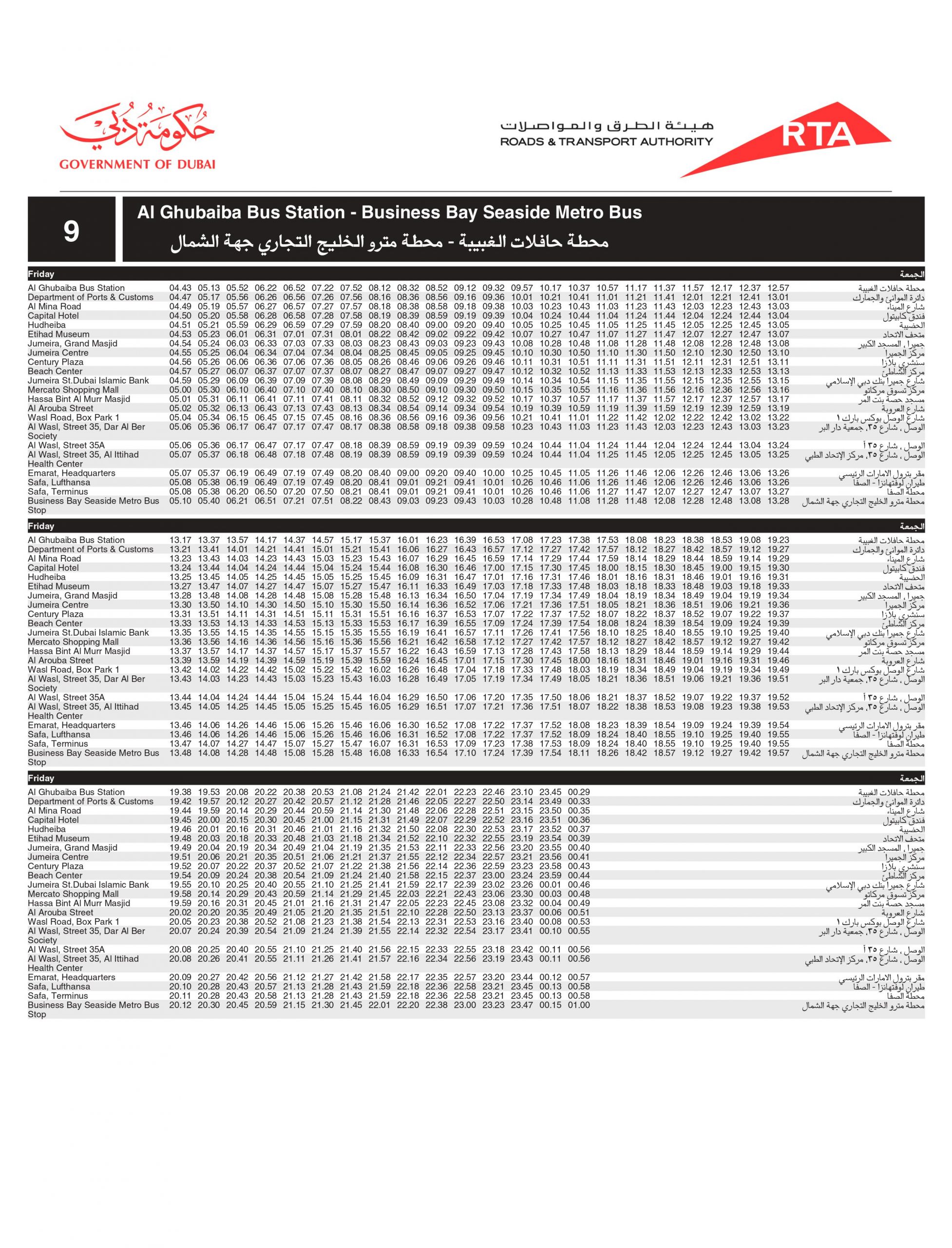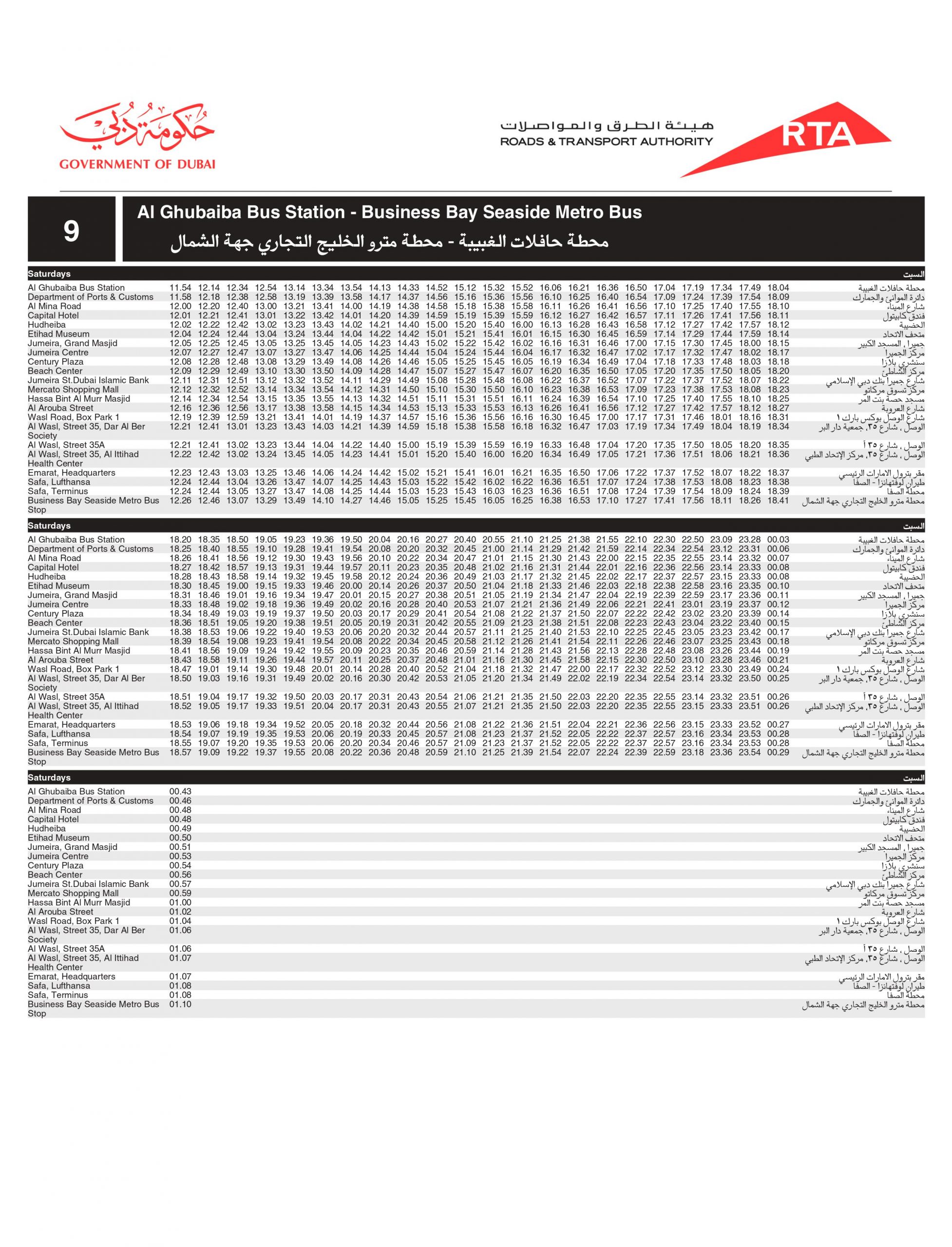 Got any question about Dubai RTA Bus No: 9? Contact Dubai RTA
