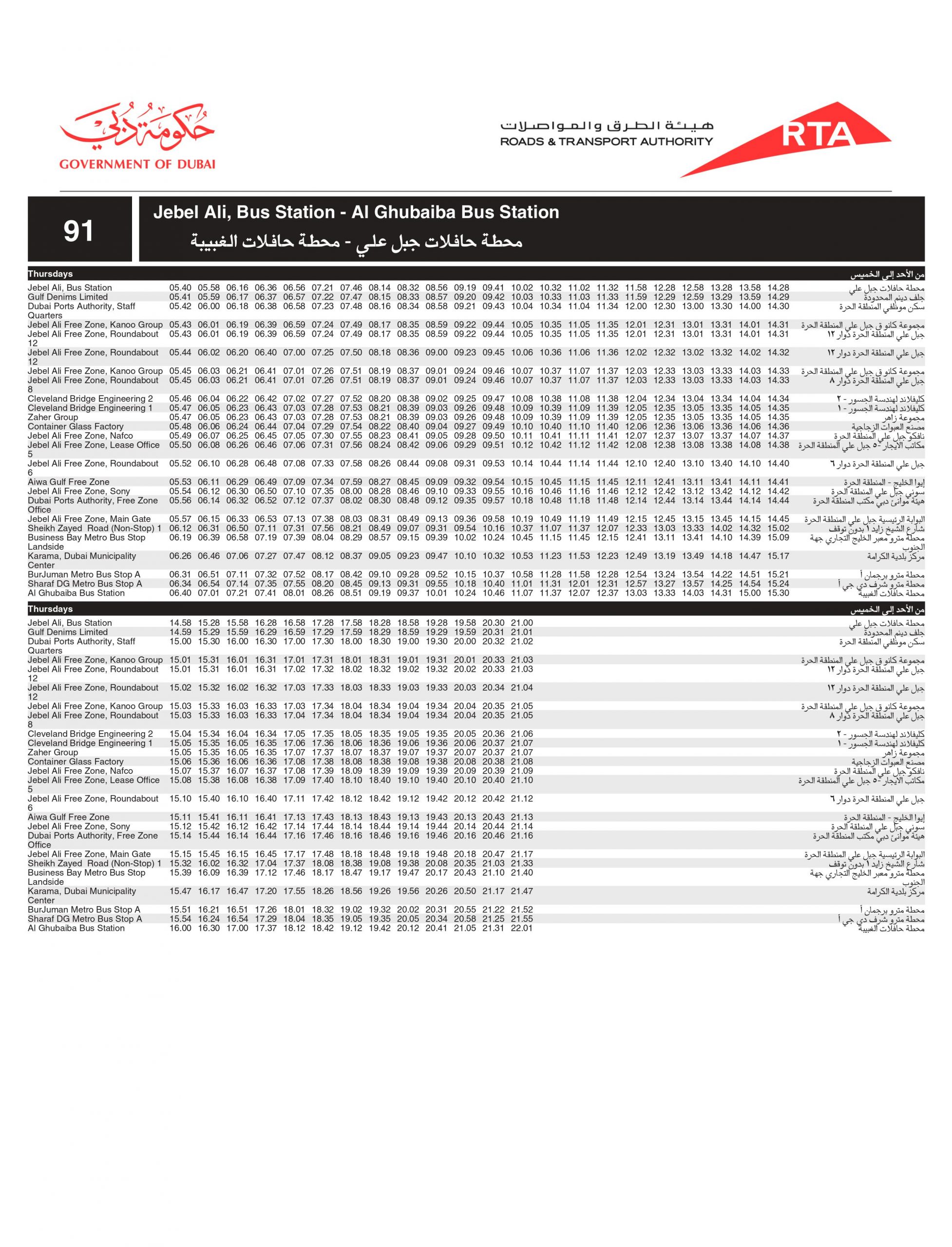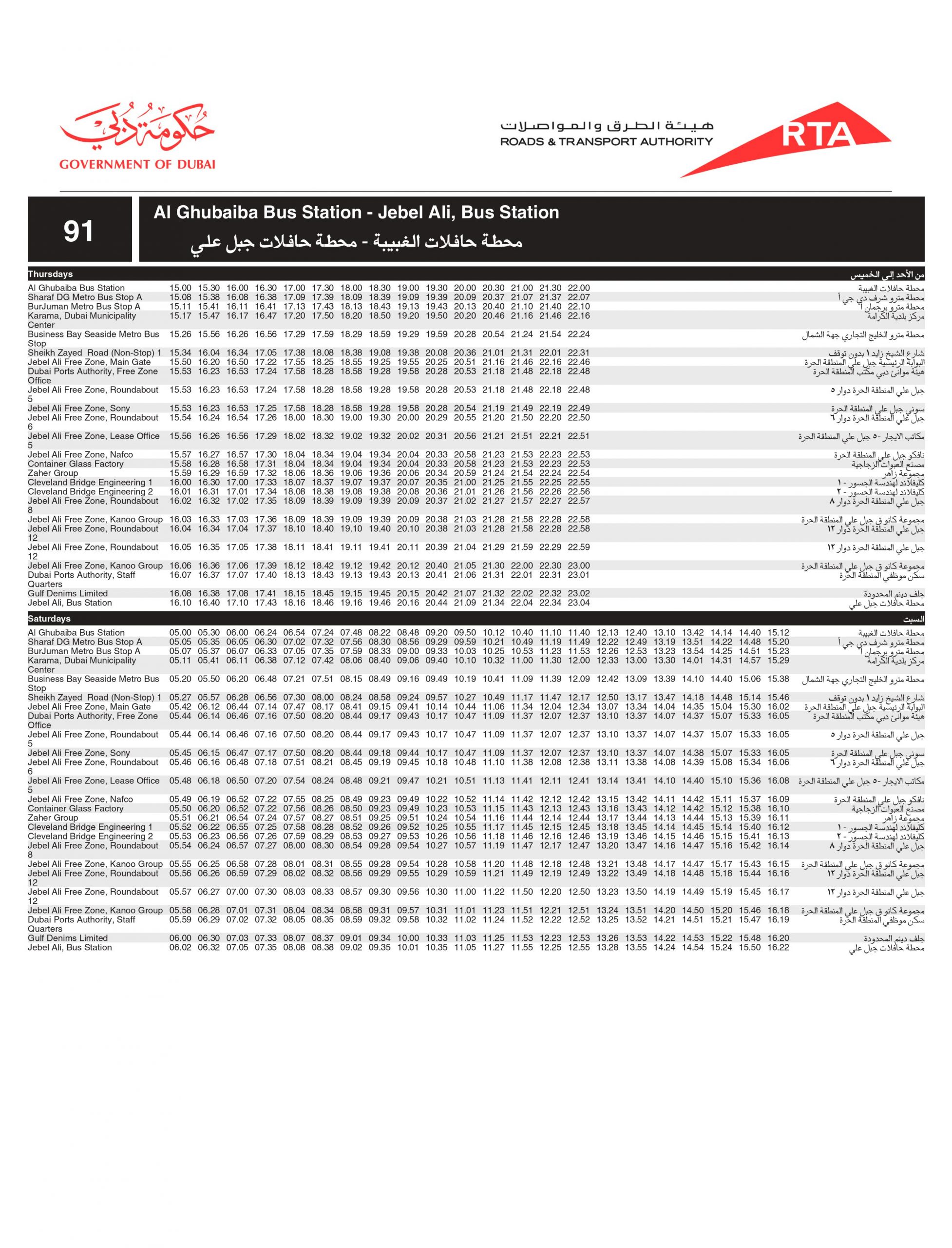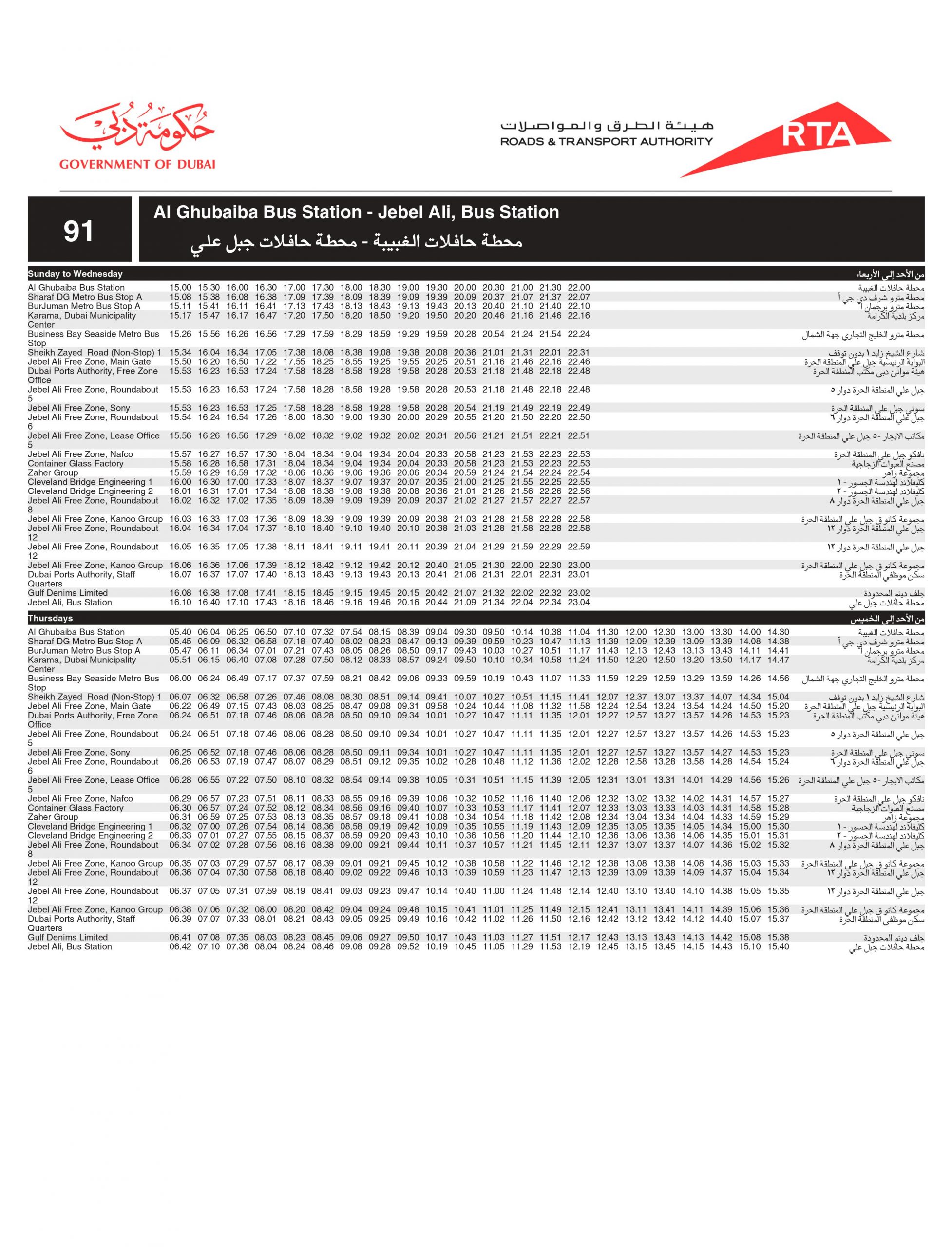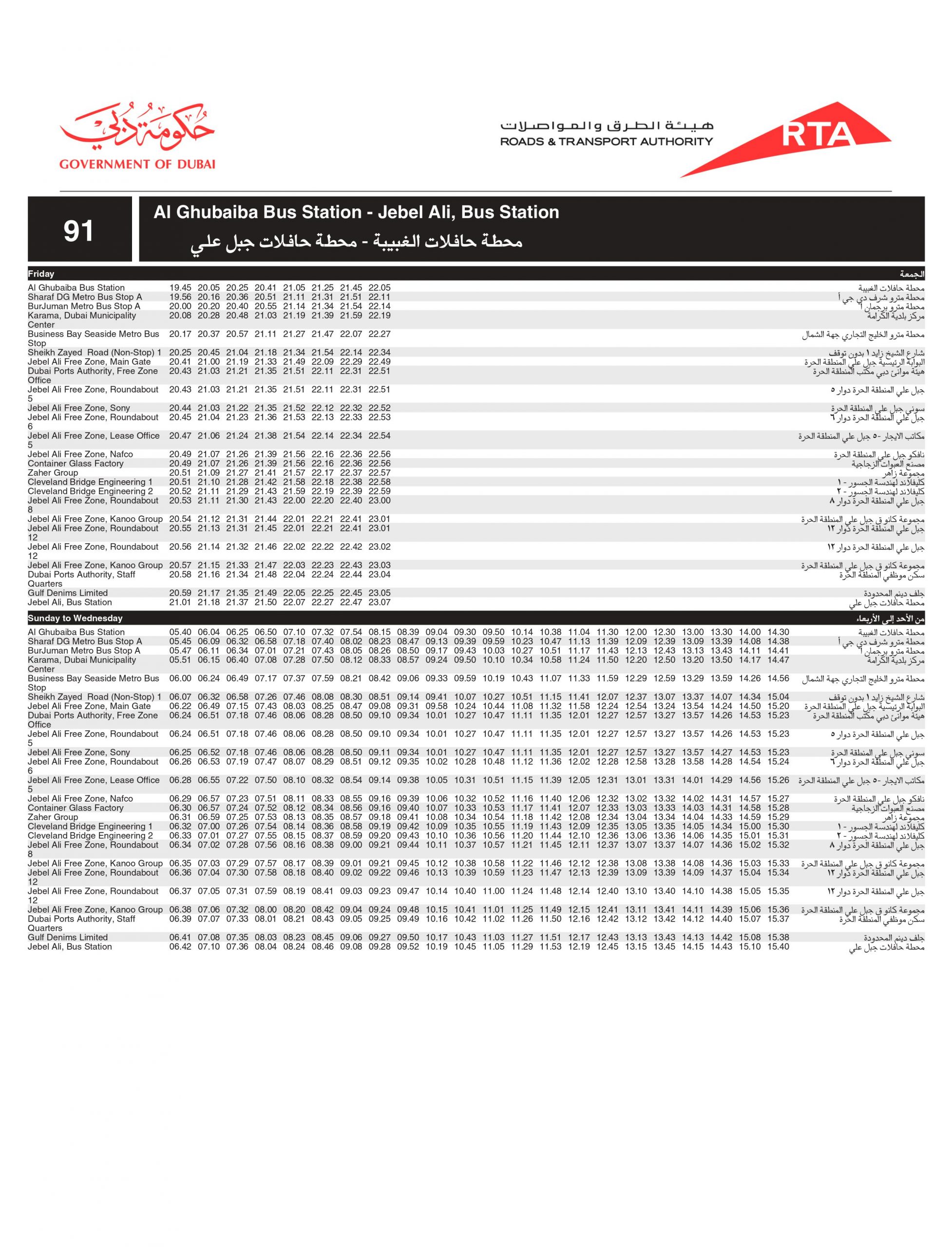 Got any question about Dubai RTA Bus No: 91 A ? Contact Dubai RTA