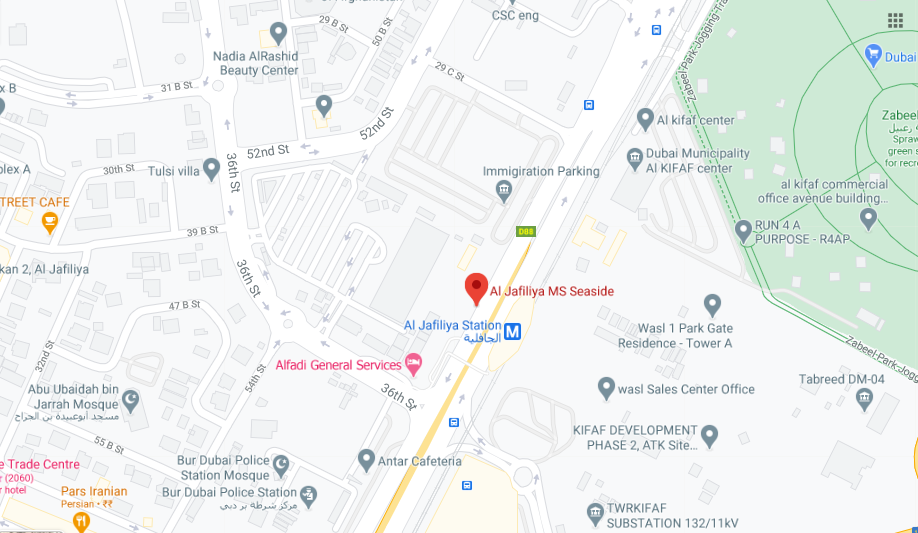 View Al Jafiliya MS Seaside Metro Bus Stop Location on Google Map