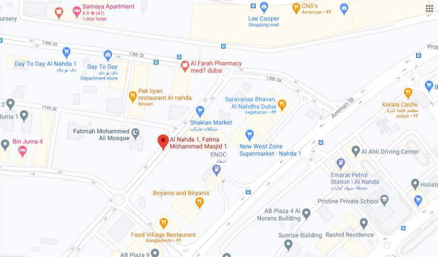 View Al Nahda 1,Fatma Mohammed Masjid 1 Bus Stop Location on Google Map