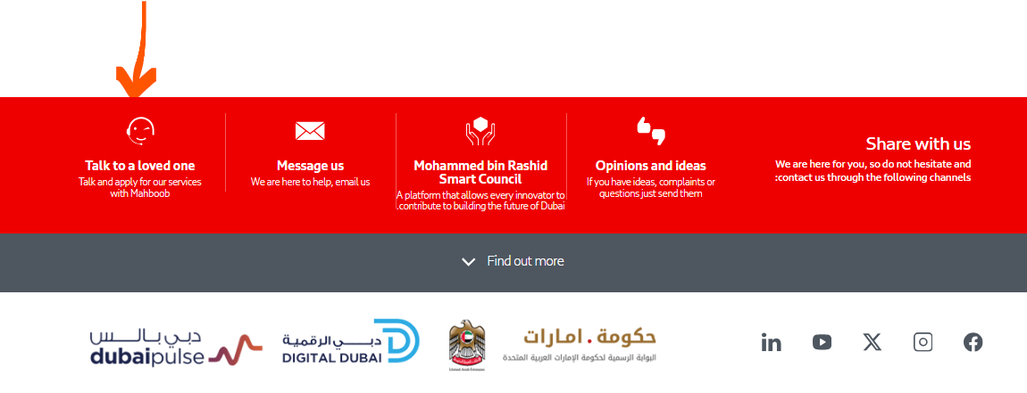 - Mahboub Chatbot on Whatsapp +971 58 800 9090