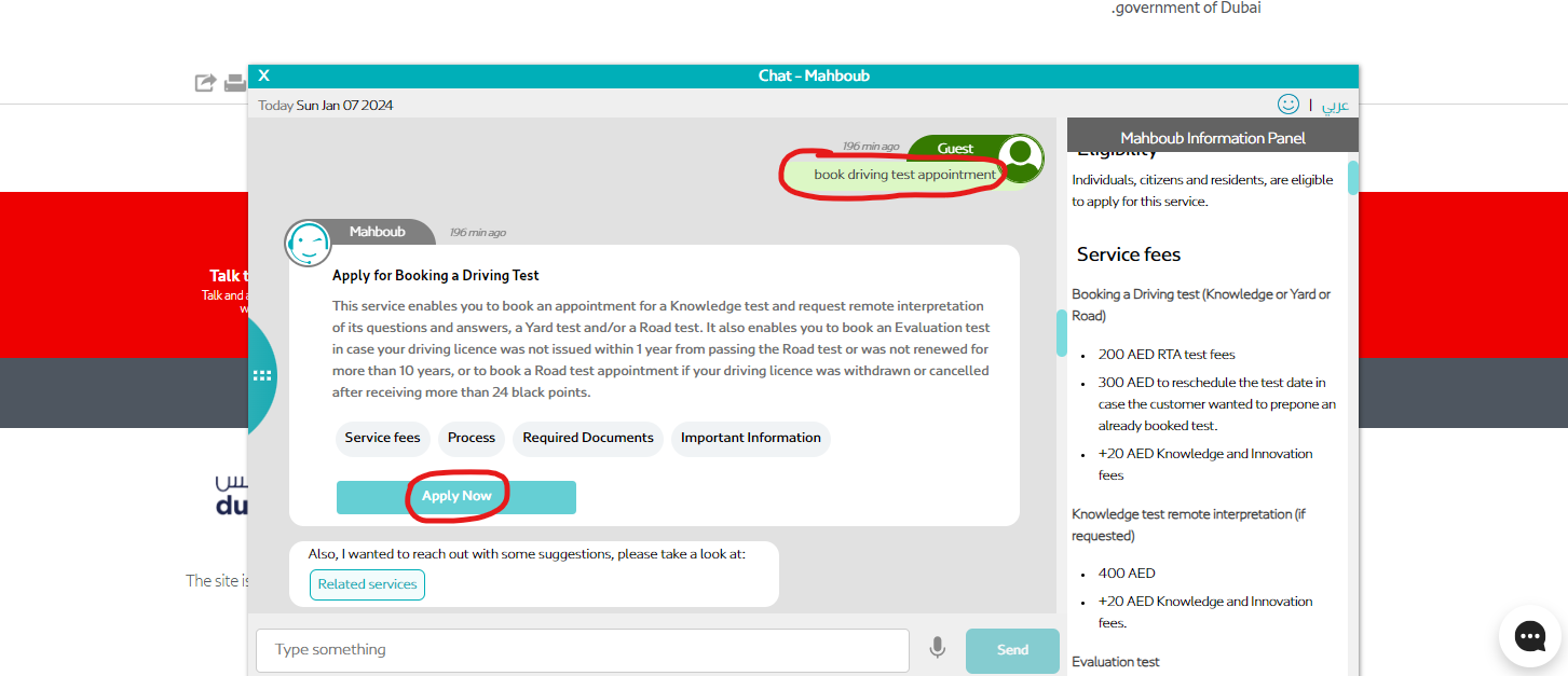 How to book driving test appointment via Mahboob WhatsApp chat / automated speaker?