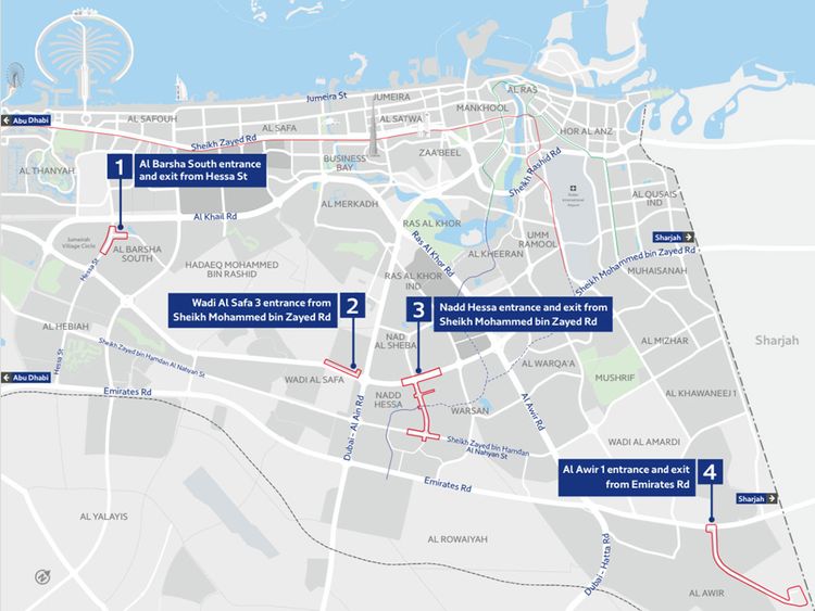 The RTA’s most recent initiative focuses on entry and exit points that are positioned strategically to reduce traffic and provide access to different residential neighborhoods. In order to accommodate Dubai’s expanding population and rising vehicle traffic, these improvements are essential. The following areas will see the implementation of the new points: