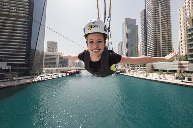 Zipline from Amwaj Towers to Dubai Marina Mall with the use of a harness. You may witness high-rise structures and expensive boats parked at the marina as you enjoy this pastime.