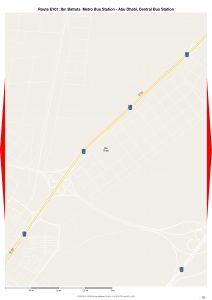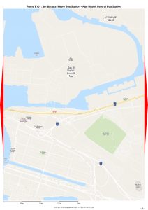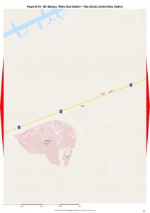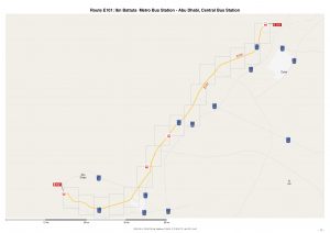 Dubai RTA Bus no: E101 runs between Ibn Battuta Metro Station and Abu Dhabi Bus Station.