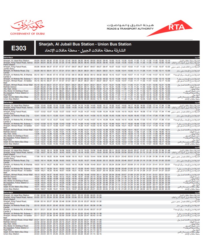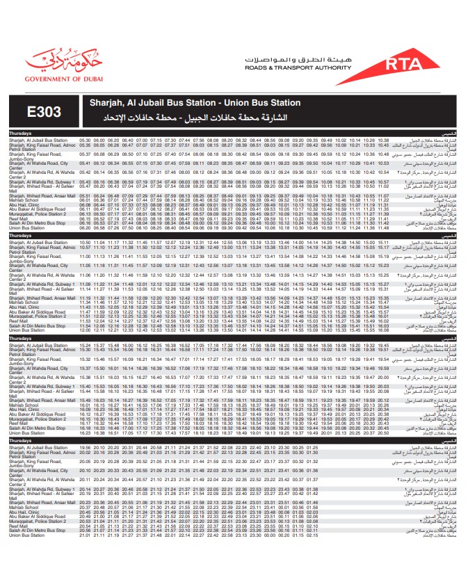 Got any question about Dubai RTA Bus No: E303? Contact Dubai RTA