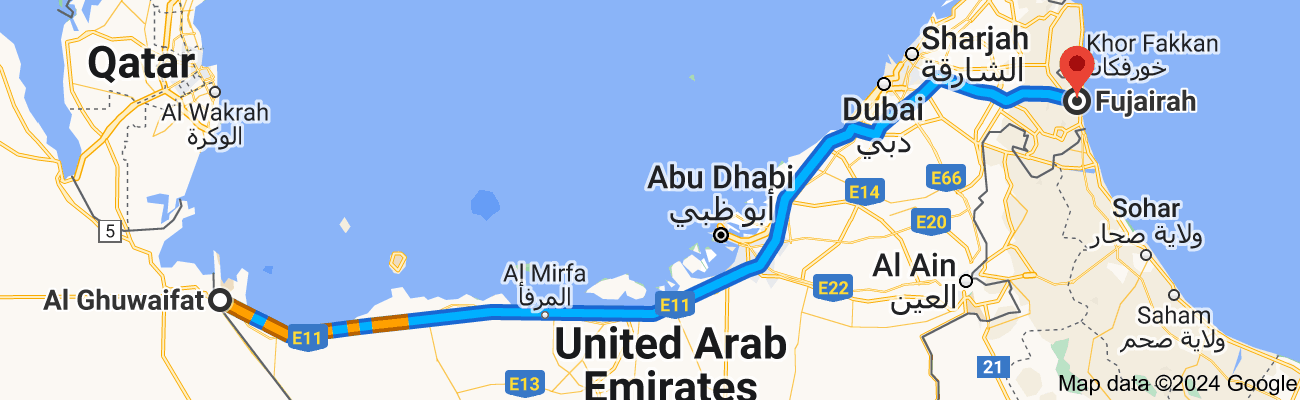 He has started from Al Ghuwaifat towards E11 road for almost 400 KM, then reaching Abu dhabi, Dubai, Sharjah, Ajman, Umm Al Quwain and finally set his foot at the Fujairah Coastal line