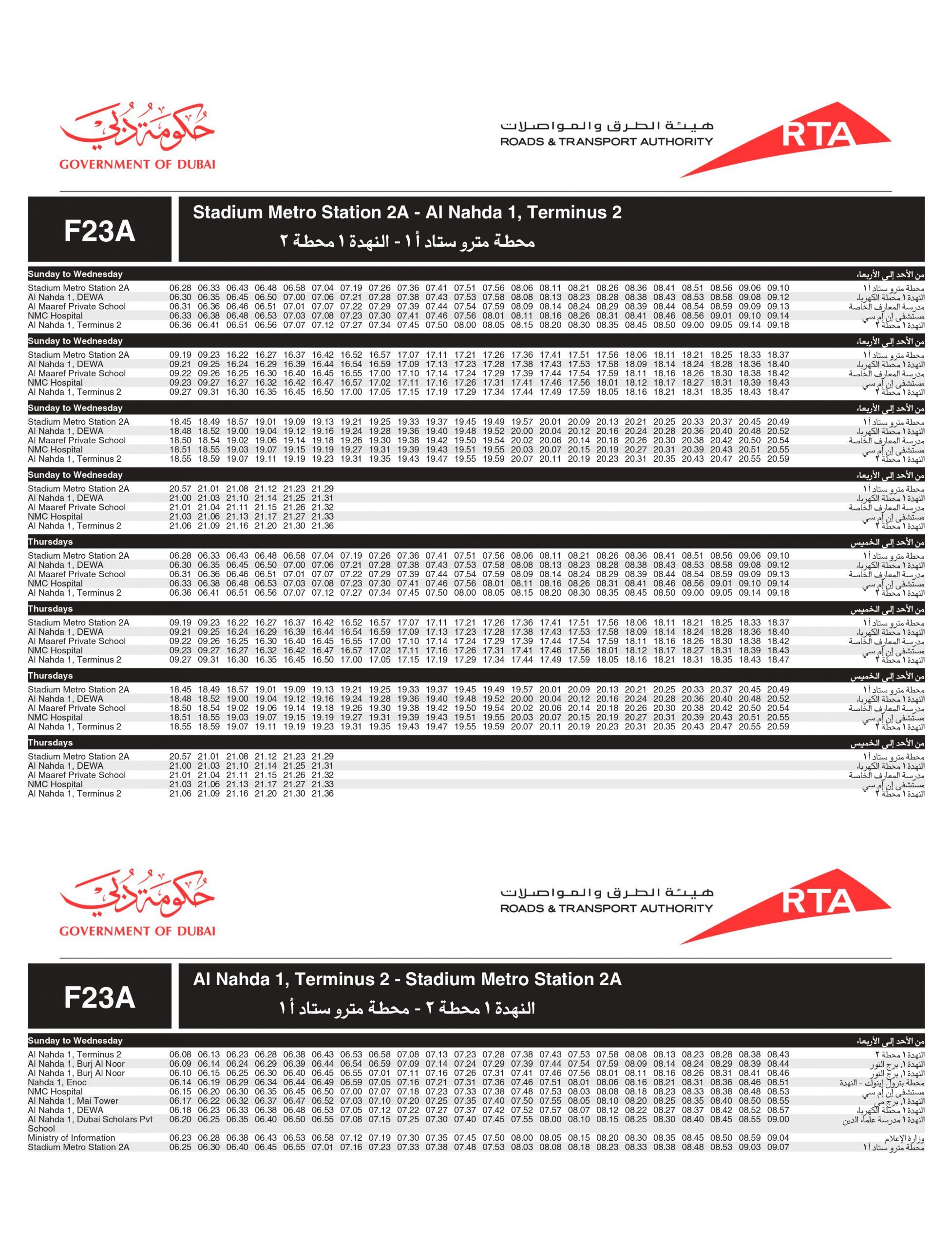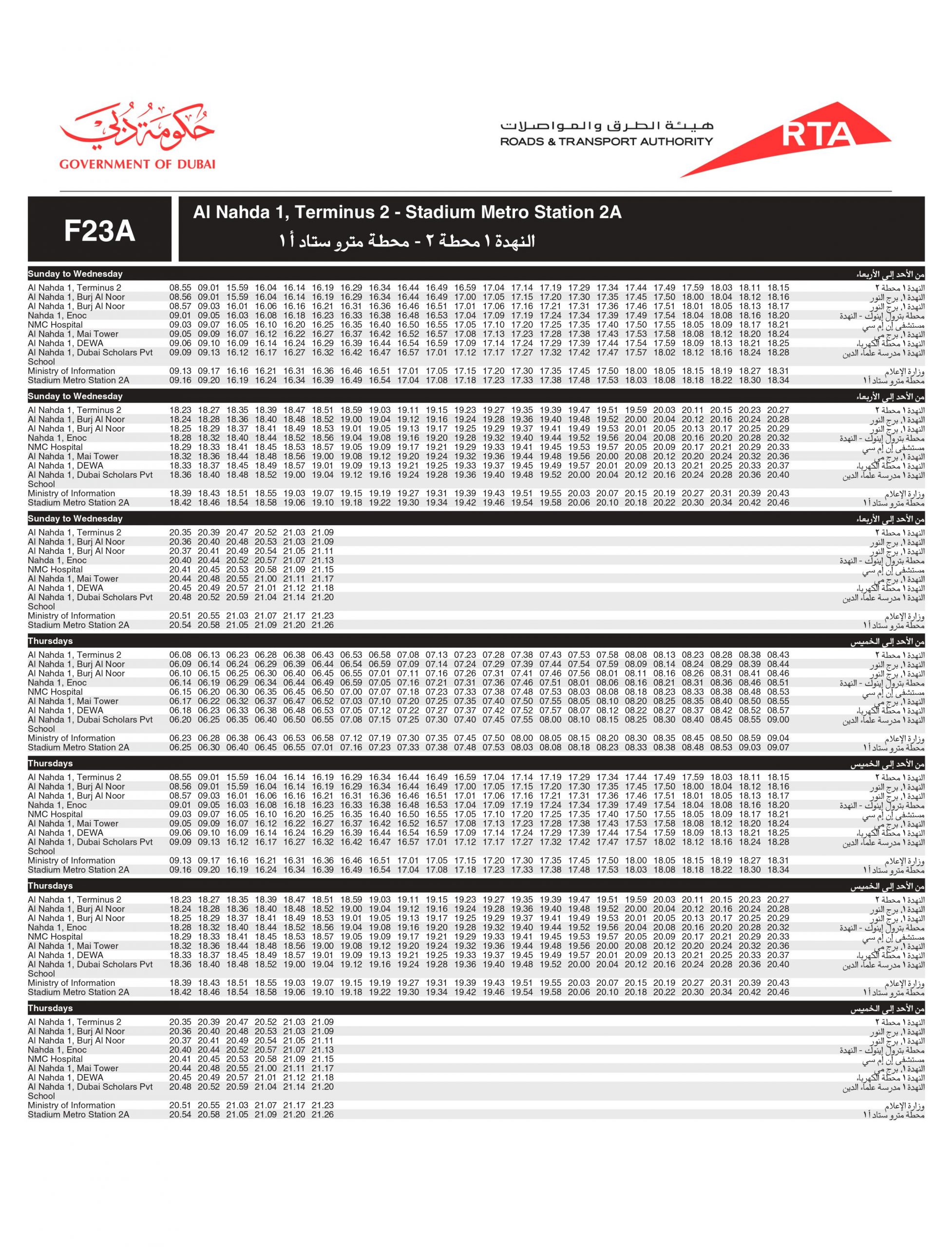 Dubai Bus number F23A stops at the below bus stops: