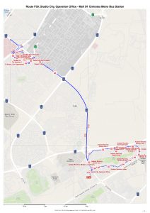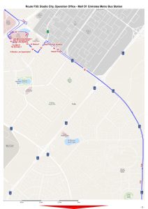 Dubai RTA Bus no: F30 runs between Mall of Emirates Metro Station and Studio City.