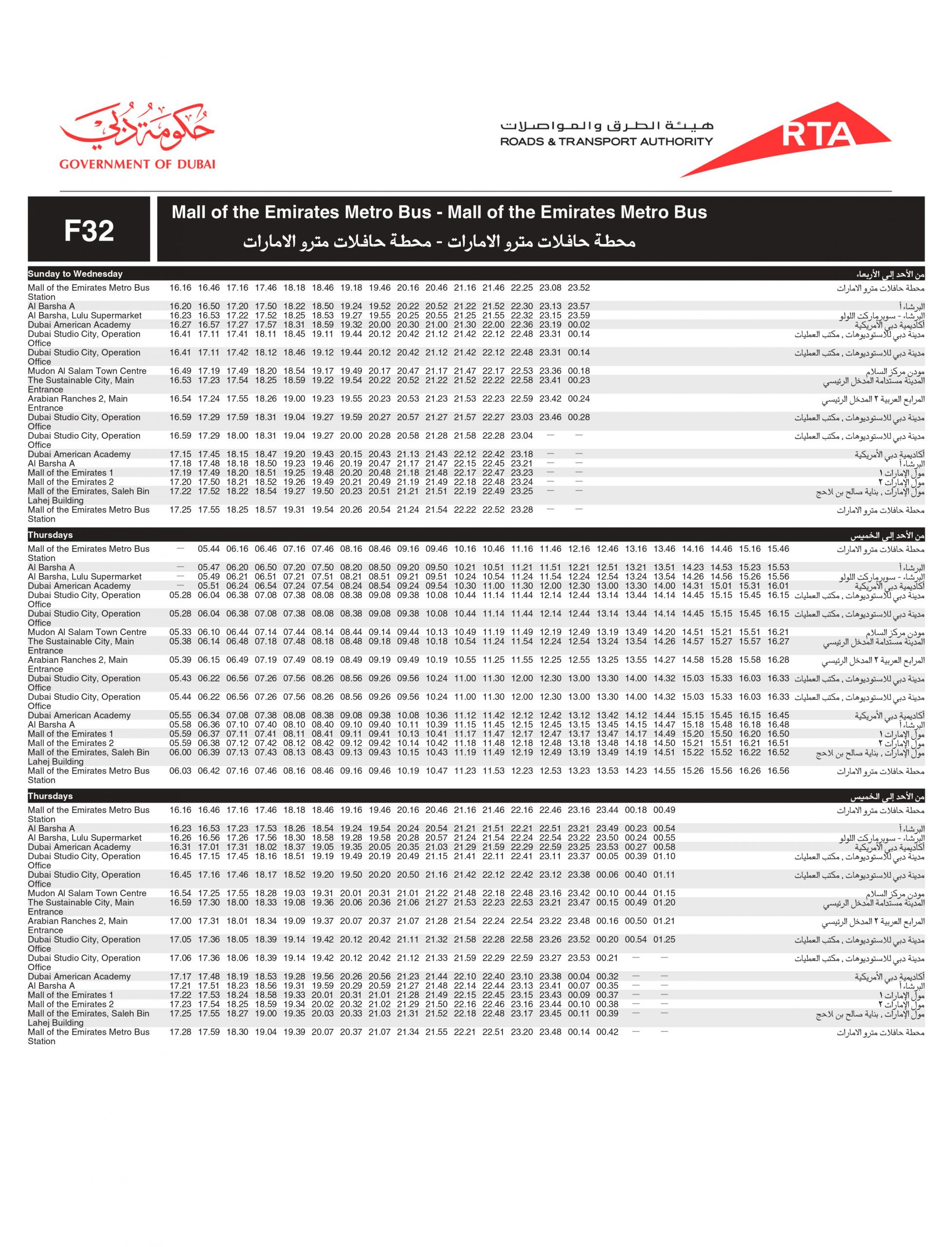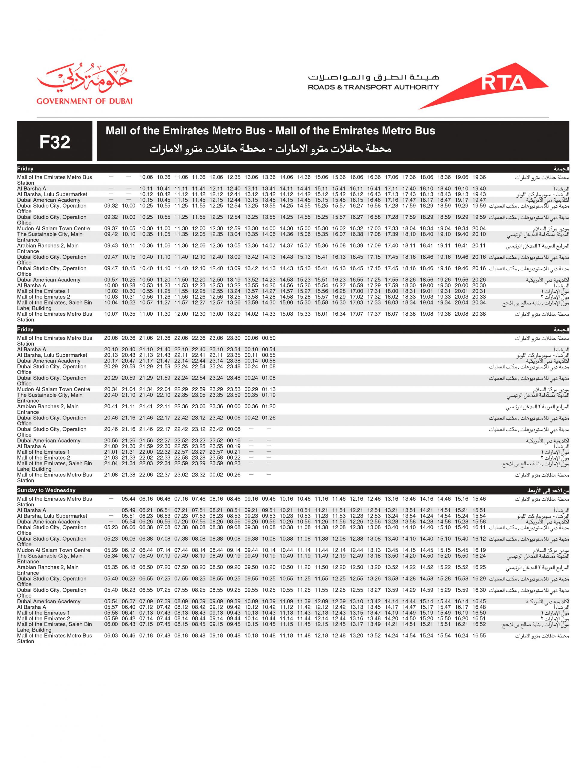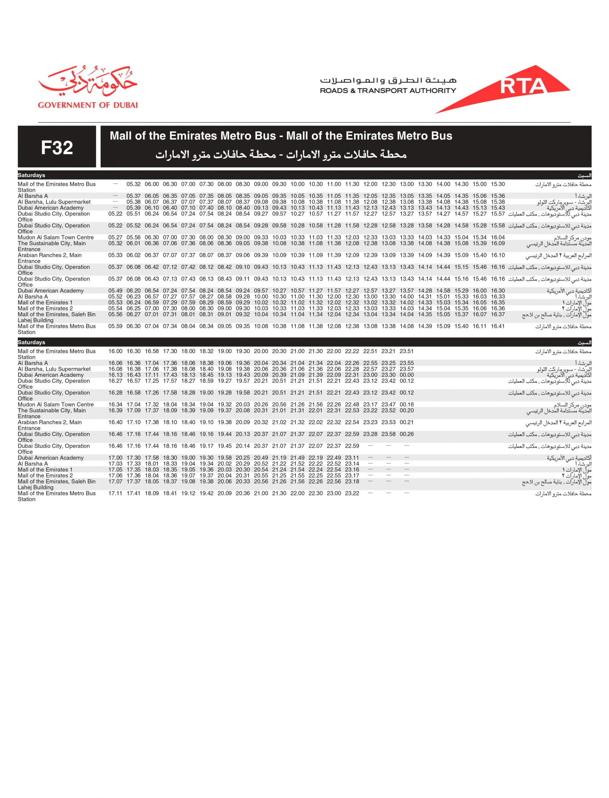 Got any question about Dubai RTA Bus No: F32? Contact Dubai RTA