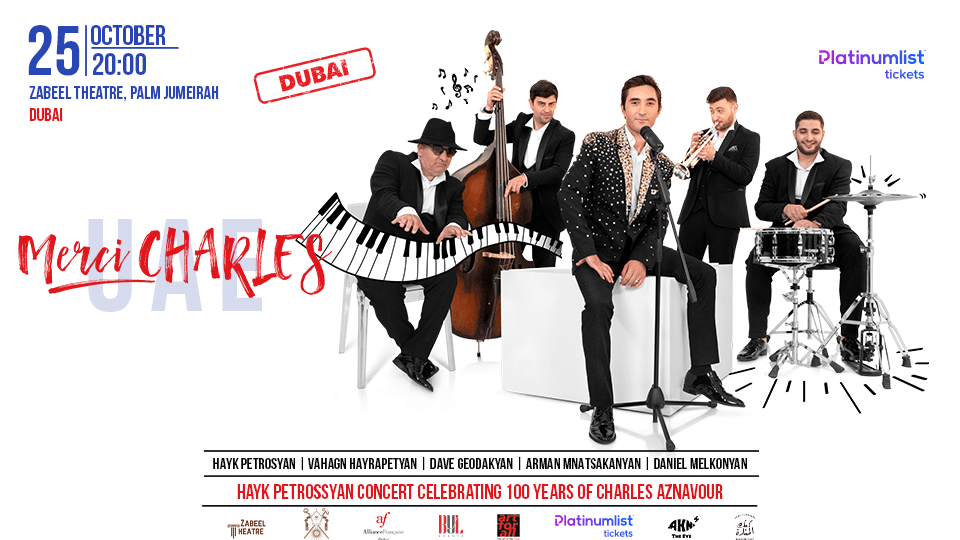 Merci Charles concert by Hayk Petrossyan 2024 at Zabeel Theatre, Dubai Phone Number, Email, Address, Hours, Tickets, Events, How to Buy, App and Social Media
