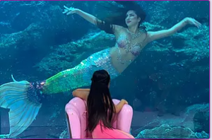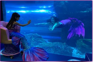 | VIP Fantasy | Duration: 60 minutes Weekends: Thurs / Fri / Sat at 3pm, 4:30pm, and 7pm.Weekdays: Sun/Mon/Tue/Wed at 4pm, 6pm and 7:30pm Note: This package must be booked in advance. | AED 850 One parent or guardian admitted for free. Additional guests admission fee: AED 100 per person | Mermaid makeover and simple hairstyling Costume dress-up and photo shoot 1 printed photo with frame to decorate Digital copies of all photos Mermaid encounter Customized banner and seashell crown |