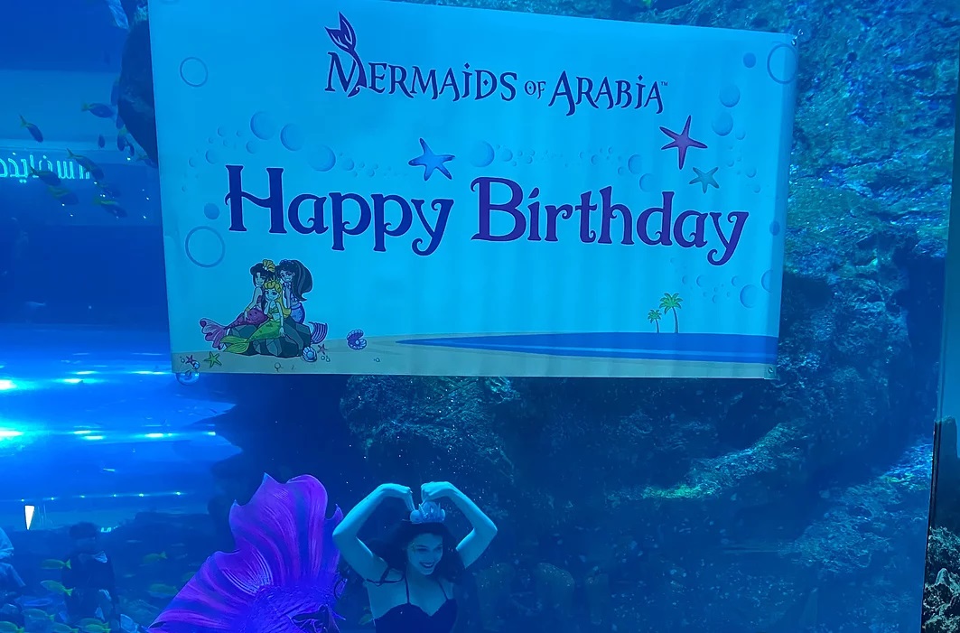 | Fantasy Birthday | Duration: 60 minutes Weekends: Thurs / Fri / Sat at 3pm, 4:30pm, and 7pm.Weekdays: Sun/Mon/Tue/Wed at 4pm, 6pm and 7:30pm Note: This package must be booked in advance. | AED 550 One parent or guardian admitted for free. Additional guests admission fee: AED 100 per person | Mermaid makeover and simple hairstyling Costume dress-up and photo shoot 1 printed photo with frame to decorate Digital copies of all photos Mermaid encounter Plain ‘Happy Birthday’ banner |